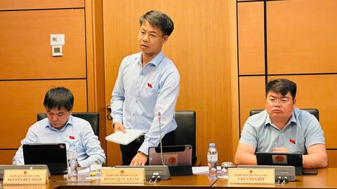 Quang cảnh buổi thảo luận tại tổ 4 gồm các Đoàn ĐBQH: Khánh Hoà, Lai Châu, Lào Cai |
