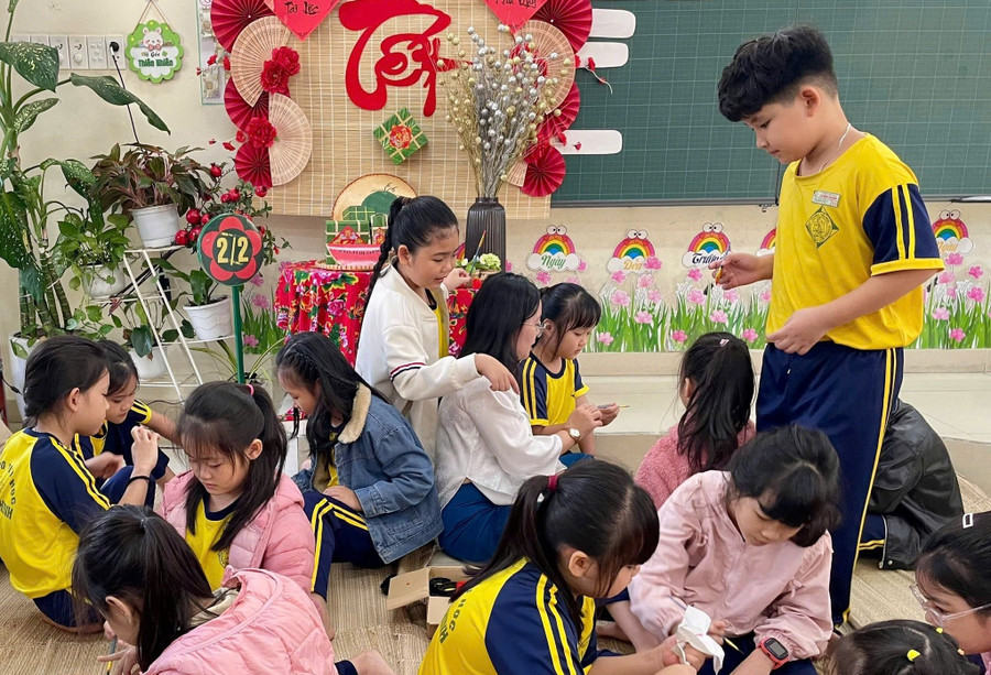 Nổi bật trong đó là hoạt động “phỏng vấn ông bà” để có thể so sánh giữa Tết xưa và nay. Học sinh có thể ghi chép, quay video hoặc ghi âm những câu chuyện của ông bà, cha mẹ. “Các em về nhà là ‘đặt hàng’ ông bà ngay. Phụ huynh rất vui và sẵn sàng đồng hành cùng con”, Hiệu trưởng Huỳnh Thị Thu Nguyệt cho biết. Qua những cuộc trò chuyện giản dị, học sinh hiểu thêm phong tục Tết, đồng thời tăng sự gắn kết giữa các thế hệ. Các sản phẩm trải nghiệm sẽ được gửi lại cho giáo viên như một cách chia sẻ niềm vui đầu năm.