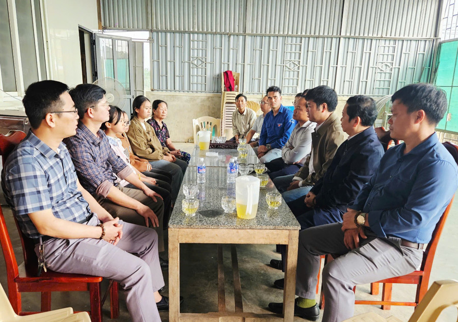 Đoàn trao quà thăm hỏi, động viên gia đình thầy Sơn.