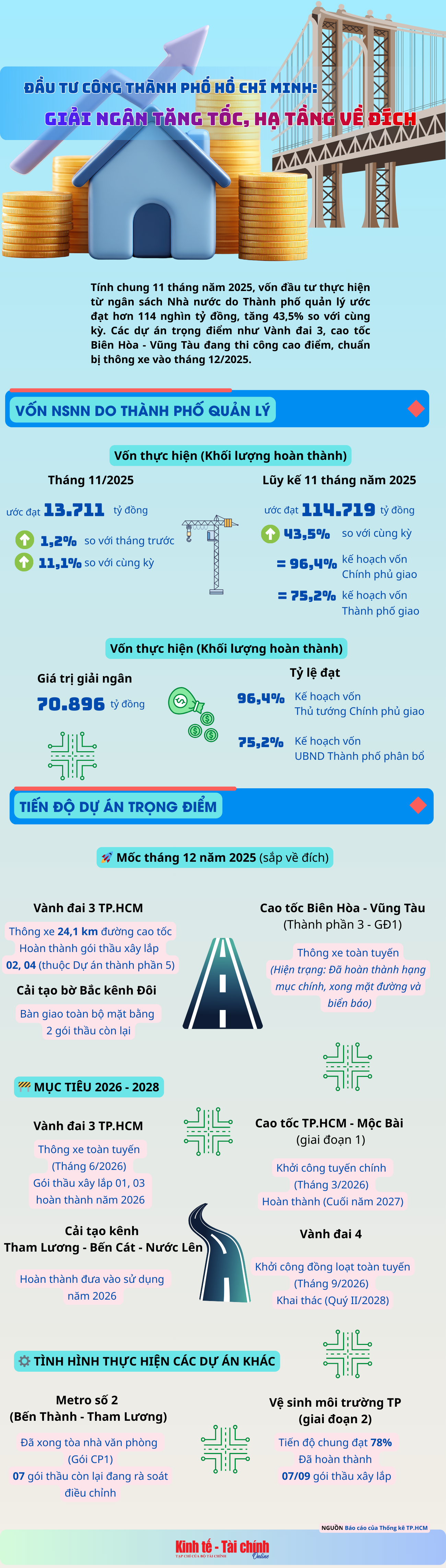 INFOGRAPHIC: Đầu tư công Thành phố Hồ Chí Minh: Giải ngân tăng tốc, hạ tầng về đích