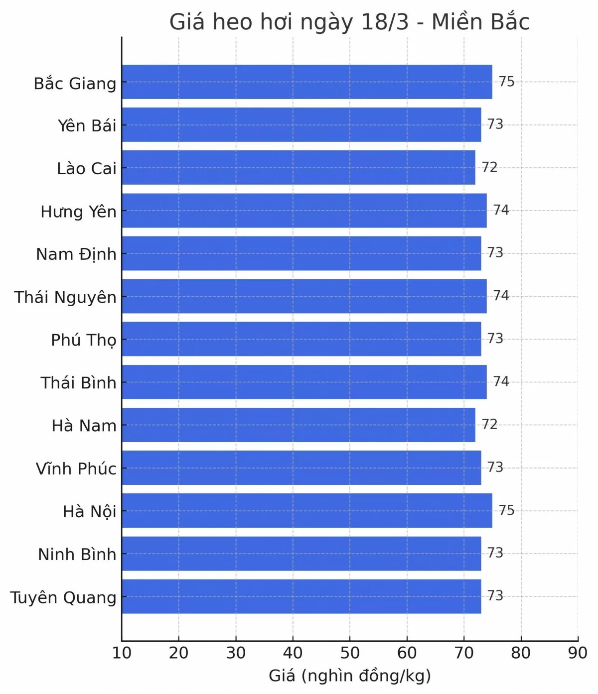Biểu đồ giá heo hơi tại các tỉnh miền Bắc ngày 18/3.