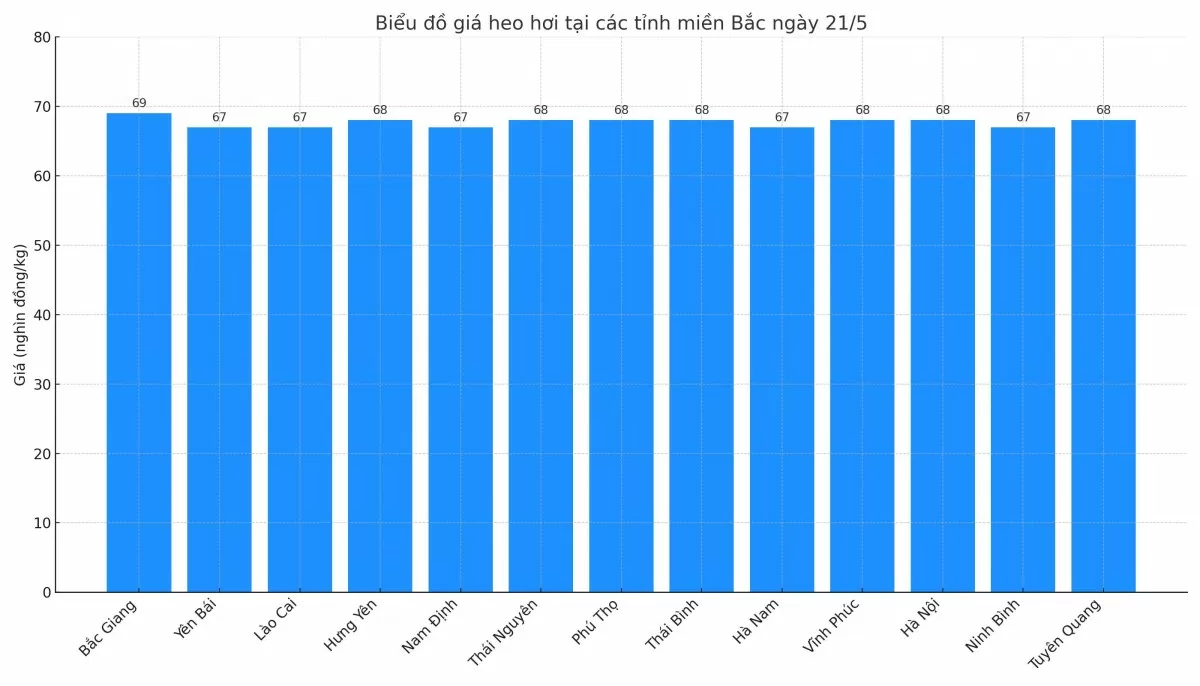 Biểu đồ giá heo hơi tại các tỉnh miền Bắc ngày 21/5. |