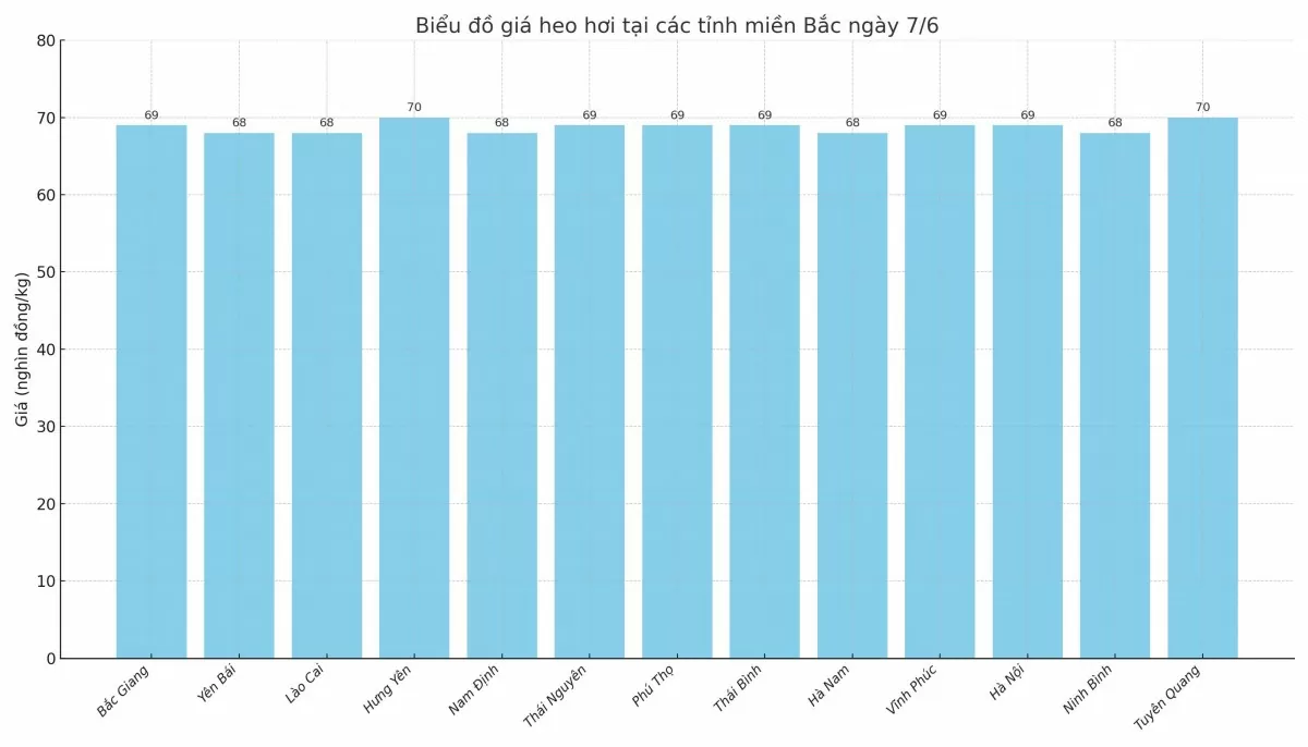 Biểu đồ giá heo hơi tại các tỉnh miền Bắc ngày 7/6. |