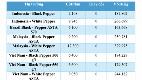 Trên thị trường xuất khẩu, giá gạo xuất khẩu của Việt Nam đi ngang so với cuối tuần. Theo Hiệp hội Lương thực Việt Nam (VFA), hiện gạo thơm 5% tấm giá dao động ở mức 415 - 430 USD/tấn; gạo 100% tấm dao động ở mức 314 - 317 USD/tấn; gạo Jasmine giá dao động 478 - 482 USD/tấn.