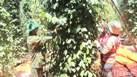 Người dân thu hoạch vụ tiêu