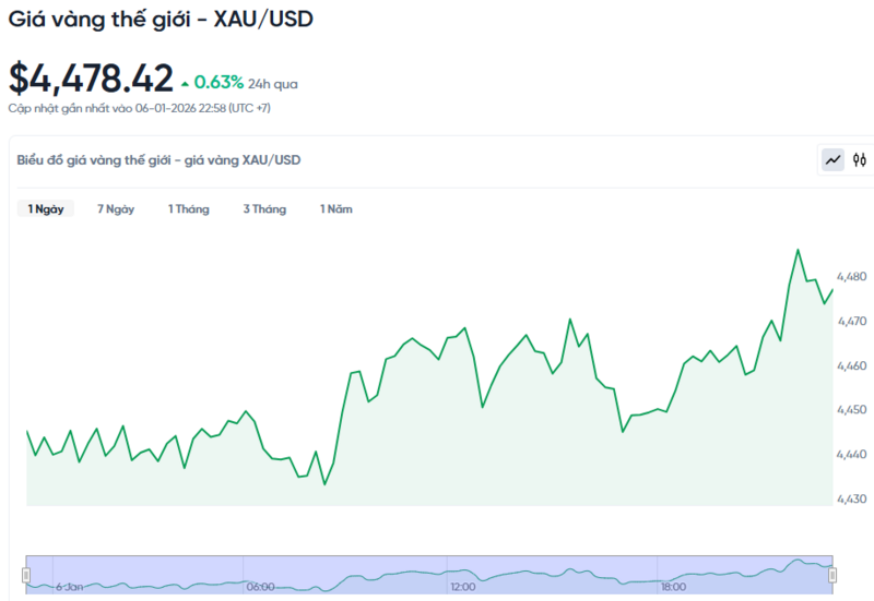 Giá vàng thế giới hôm nay 07/01/2026 và biểu đồ biến động giá vàng thế giới 24h qua