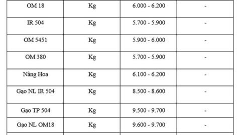 Đơn vị tính: Triệu đồng/lượng | Đơn vị tính: Nghìn đồng/lượng | |||||||||