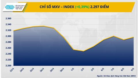 Số liệu từ Sở Giao dịch Hàng hóa Việt Nam (MXV) cho thấy, mặc dù sắc xanh áp đảo trên bảng giá hàng hoá nguyên liệu thế giới trong ngày giao dịch đầu tuần (13/5), tuy nhiên mức giảm mạnh của một số mặt hàng đã kéo chỉ số MXV-Index chốt ngày suy yếu nhẹ 0,08% về 2.300 điểm. Giá trị giao dịch toàn Sở đạt trên 6.900 tỷ đồng.