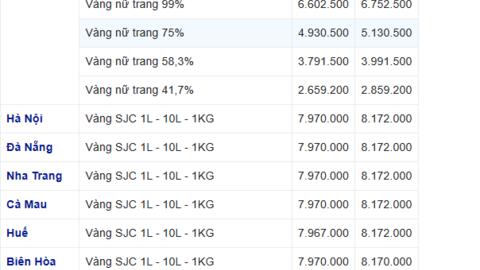 Cùng chiều với diễn biến với giá vàng thế giới, cũng như sự chỉ đạo điều hành của Chính phủ về quản lý thị trường vàng, giá vàng SJC ở trong nước rạng sáng nay giảm sâu. Vào lúc 8h sáng nay, giá vàng SJC niêm yết ở mức 78,40 triệu đồng/lượng mua vào và 80,40 triệu đồng/lượng bán ra. Như vậy, so với rạng sáng qua, giá vàng SJC đã được điều chỉnh giảm 600.000 đồng ở cả 2 chiều.