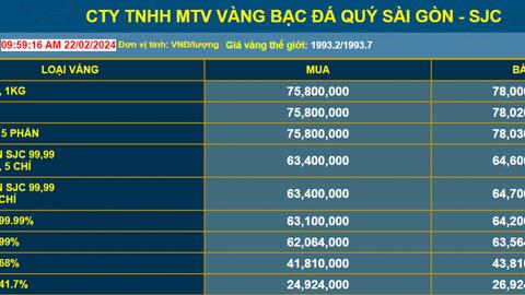 Giá vàng giao dịch lúc trưa ngày 26/2, giá vàng SJC giao dịch tại Công ty Vàng bạc đá quý Sài Gòn khu vực TP. Hồ Chí Minh quanh mức 76,80 - 79,00, tăng 230 ngàn đồng/lượng chiều mua và tăng 350 ngàn đồng/lượng chiều bán so với chốt phiên hôm qua.