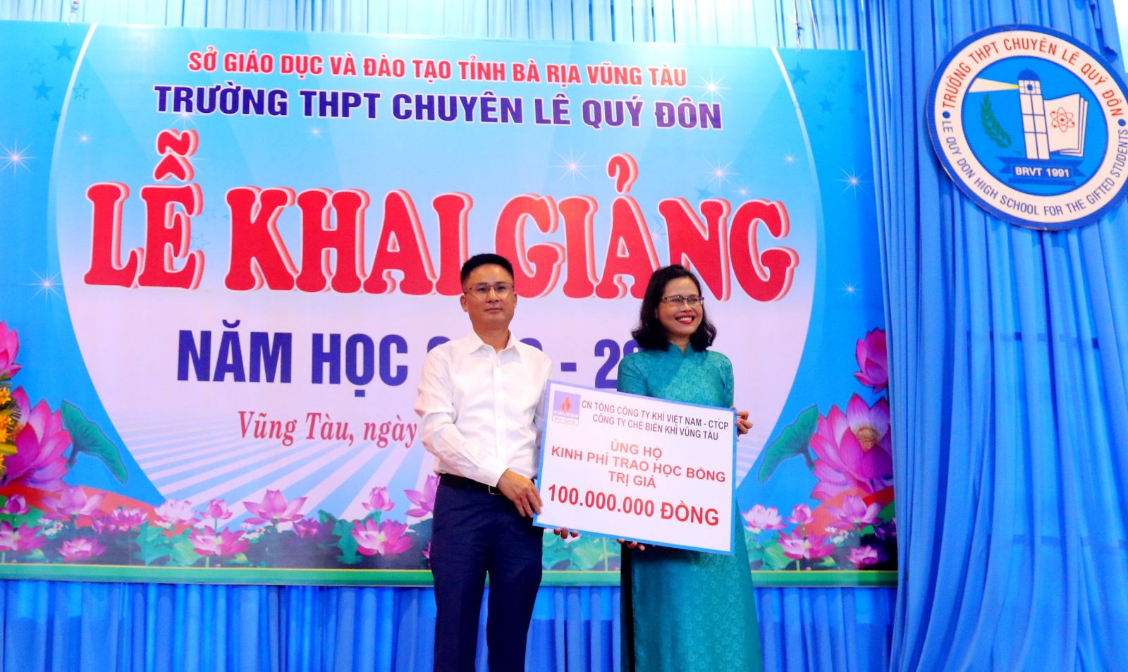 Hoà cùng không khí vui tươi ngày tựu trường, để tiếp thêm niềm tin, sự hỗ trợ kịp thời cho các em học sinh vững bước đến trường, Công ty Chế biến Khí Vũng Tàu (KVT) đã tổ chức trao tặng 200 phần học bổng với tổng trị giá 200 triệu đồng cho các em học sinh có hoàn cảnh khó khăn với thành tích học tập xuất sắc tại những điểm trường thuộc địa bàn có các công trình do KVT quản lý: Trường THPT Chuyên Lê Quý Đôn (thành phố Vũng Tàu); Trường Tiểu học Nguyễn Viết Xuân (Tp Vũng Tàu); Trường THCS Phạm Hữu Chí (huyện Long Điền); Trường Tiểu học Nguyễn Thị Định (thị xã Phú Mỹ); Trường tiểu học Lý Thường Kiệt (thị xã Phú Mỹ).