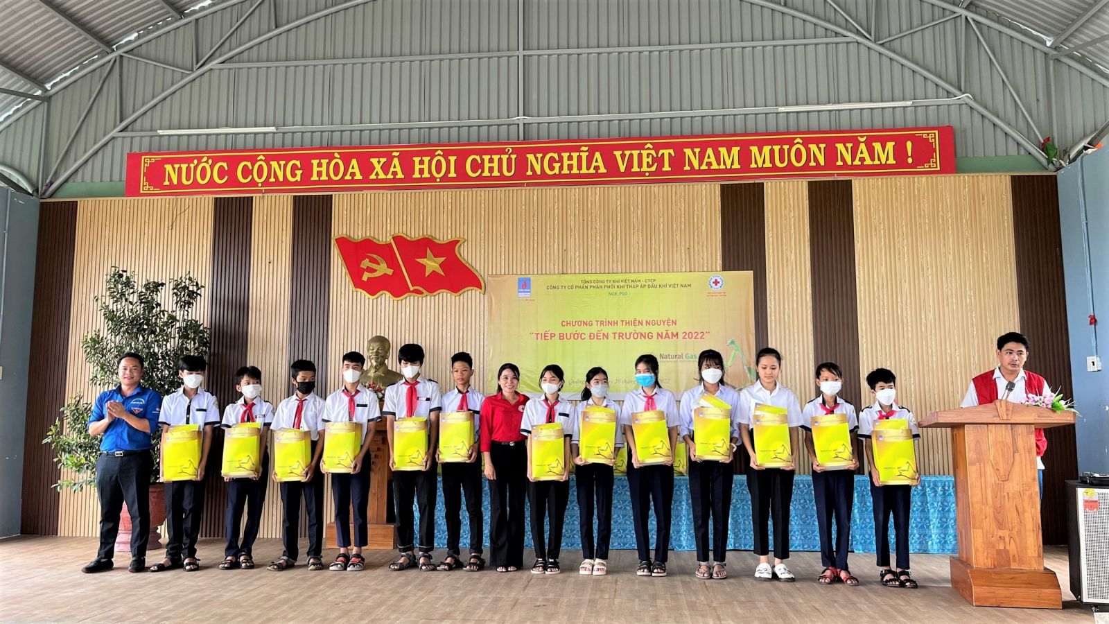 Được sự đồng ý của Ban lãnh đạo Công ty, đại diện Công đoàn và Đoàn Thanh niên Công ty Cổ Phần phối Khí thấp áp Dầu khí Việt Nam (PV GAS D) đã phối hợp với Hội Chữ thập đỏ và Ban Giám hiệu trường Tiểu học và THCS Lê Quý Đôn xã Duy Tân, huyện Duy Xuyên, tỉnh Quảng Nam tổ chức chương trình thiện nguyện “Tiếp bước đến trường năm 2022”.