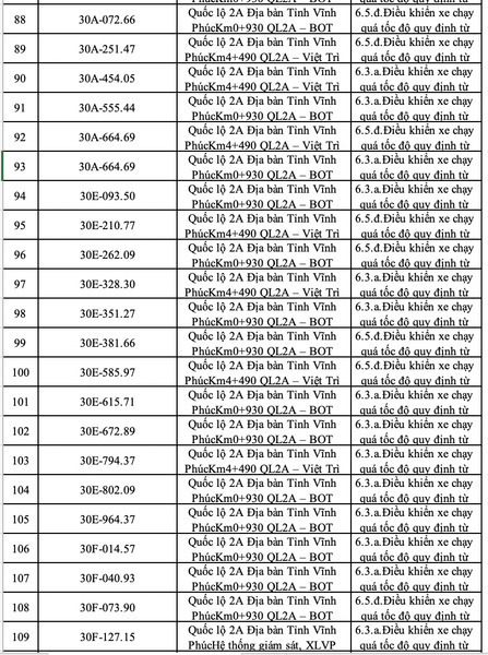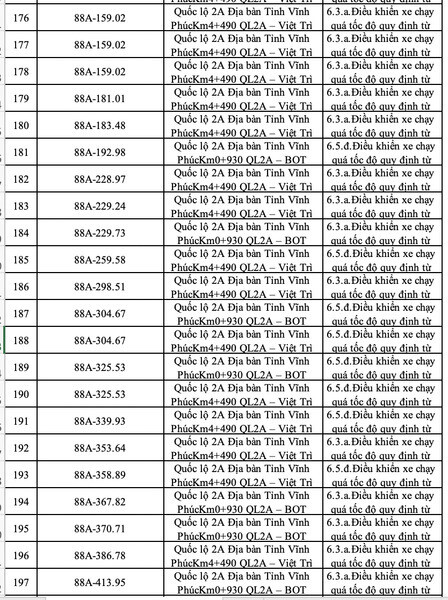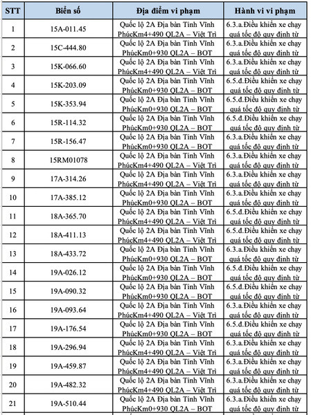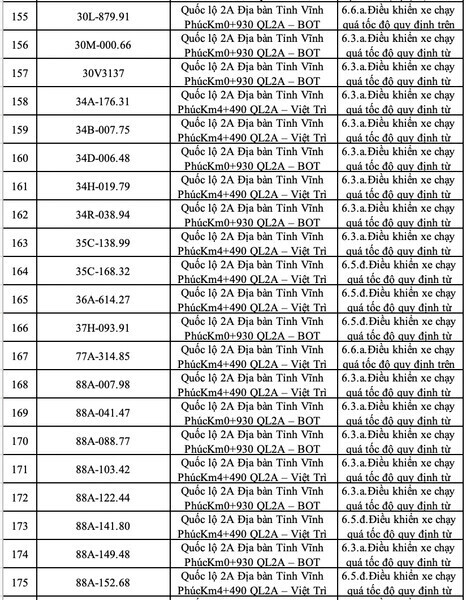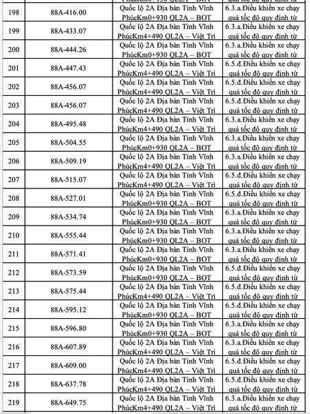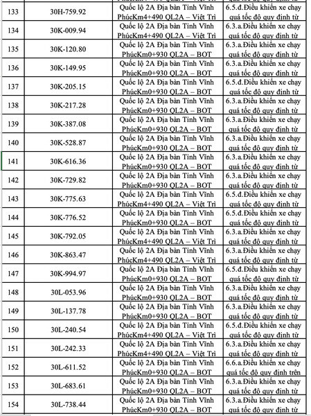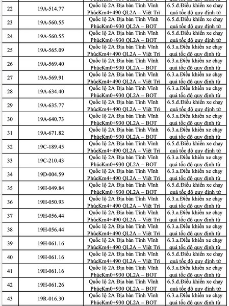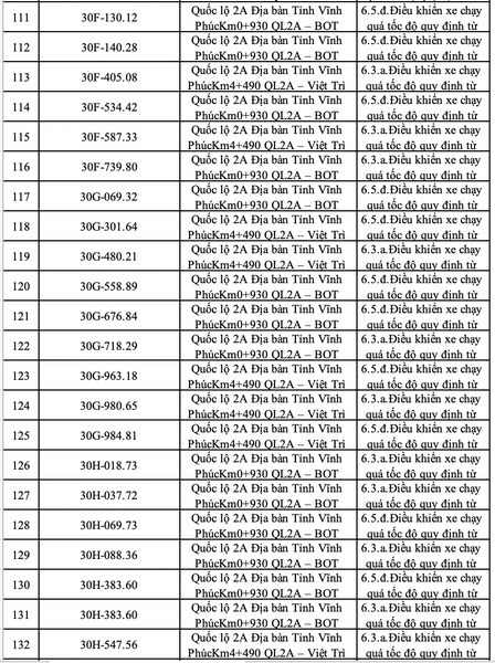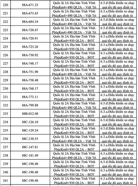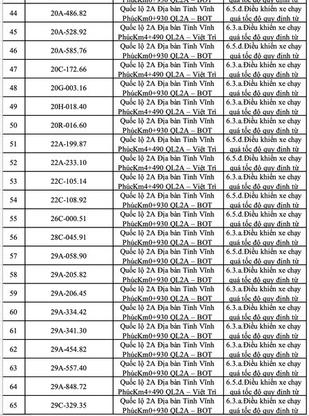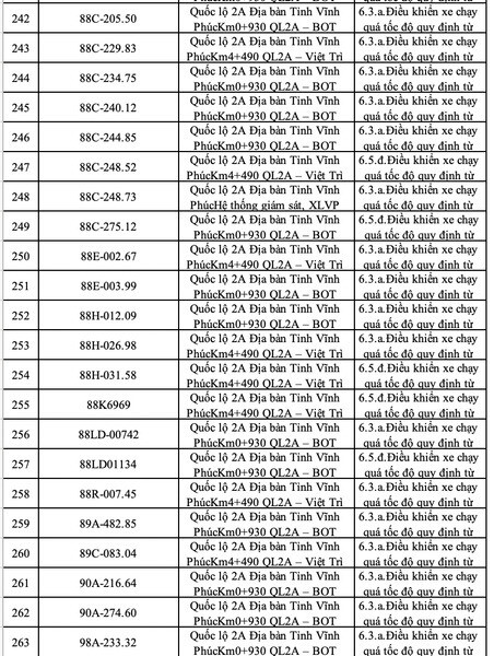 Cảnh sát giao thông, Công an tỉnh Vĩnh Phúc công khai 271 trường hợp bị phạt nguội từ ngày 1.1.2025 - 20.1.2025.
