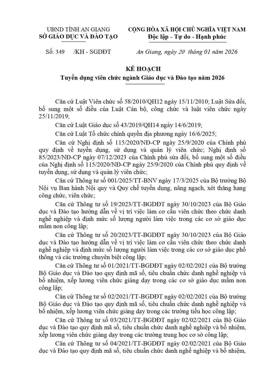 Kế hoạch tuyển dụng viên chức của Sở GD&ĐT tỉnh An Giang.