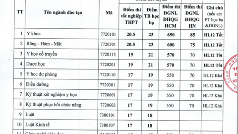 Các ngành Y học cổ truyền, Dược học có điểm sàn xét điểm thi tốt nghiệp THPT 19 điểm; điểm sàn xét học bạ 24 điểm.