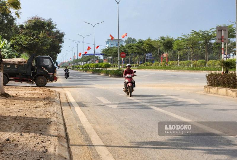 Bụi bặm “kéo ra” đường 58 m - trục kết nối chính của TP Cao Bằng. Ảnh: Tân Văn