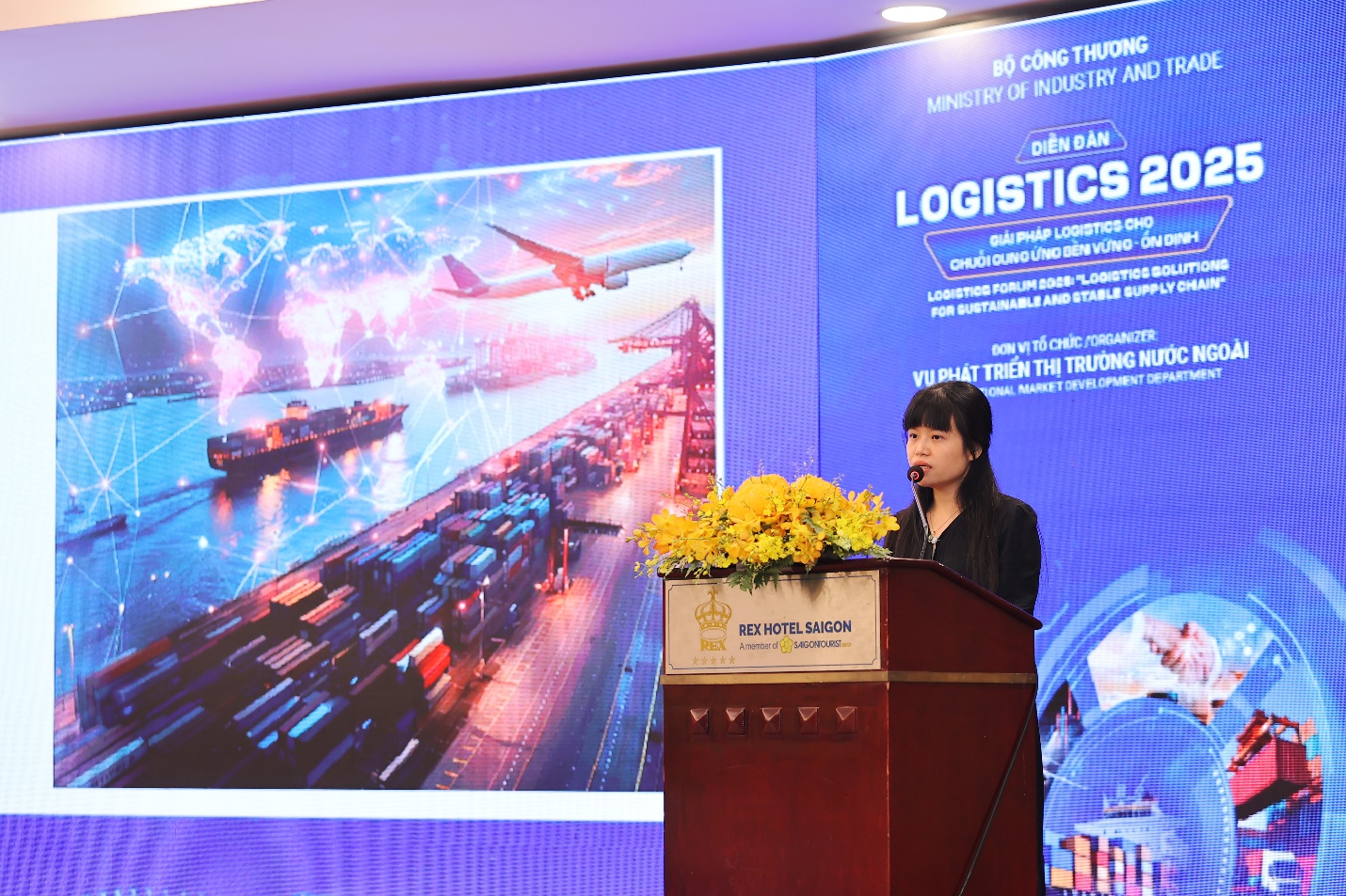 Tại diễn đàn, TS. Đinh Thị Bảo Linh – Phó Giám đốc Trung tâm Thông tin Công nghiệp và Thương mại (Bộ Công Thương) đã có trình bày về logistics thích ứng với bối cảnh quy định, chính sách mới: Xu hướng quốc tế, yêu cầu cấp bách trong nửa cuối năm 2025 và gợi ý đối với Việt Nam.