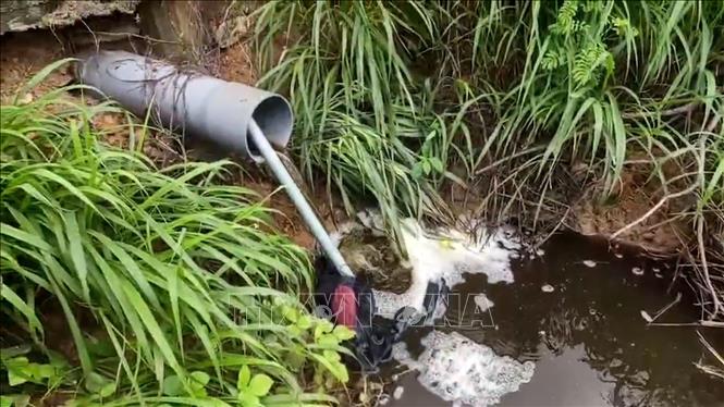 Qua kiểm tra sơ bộ ban đầu, đoàn kiểm tra phát hiện tại trang trại chăn nuôi heo Minh Thiện I, thôn Đoàn Kết (trang trại đang bị người dân phản ánh) có cống dẫn nước ra bên ngoài. Đoàn đã cho đào cống nước này lên để kiểm tra xuất phát từ đâu. Bước đầu theo lý giải của người quản lý trang trại Minh Thiện I, đường cống thoát nước này nối với bể chứa nước mưa”, ông Tiến khẳng định.