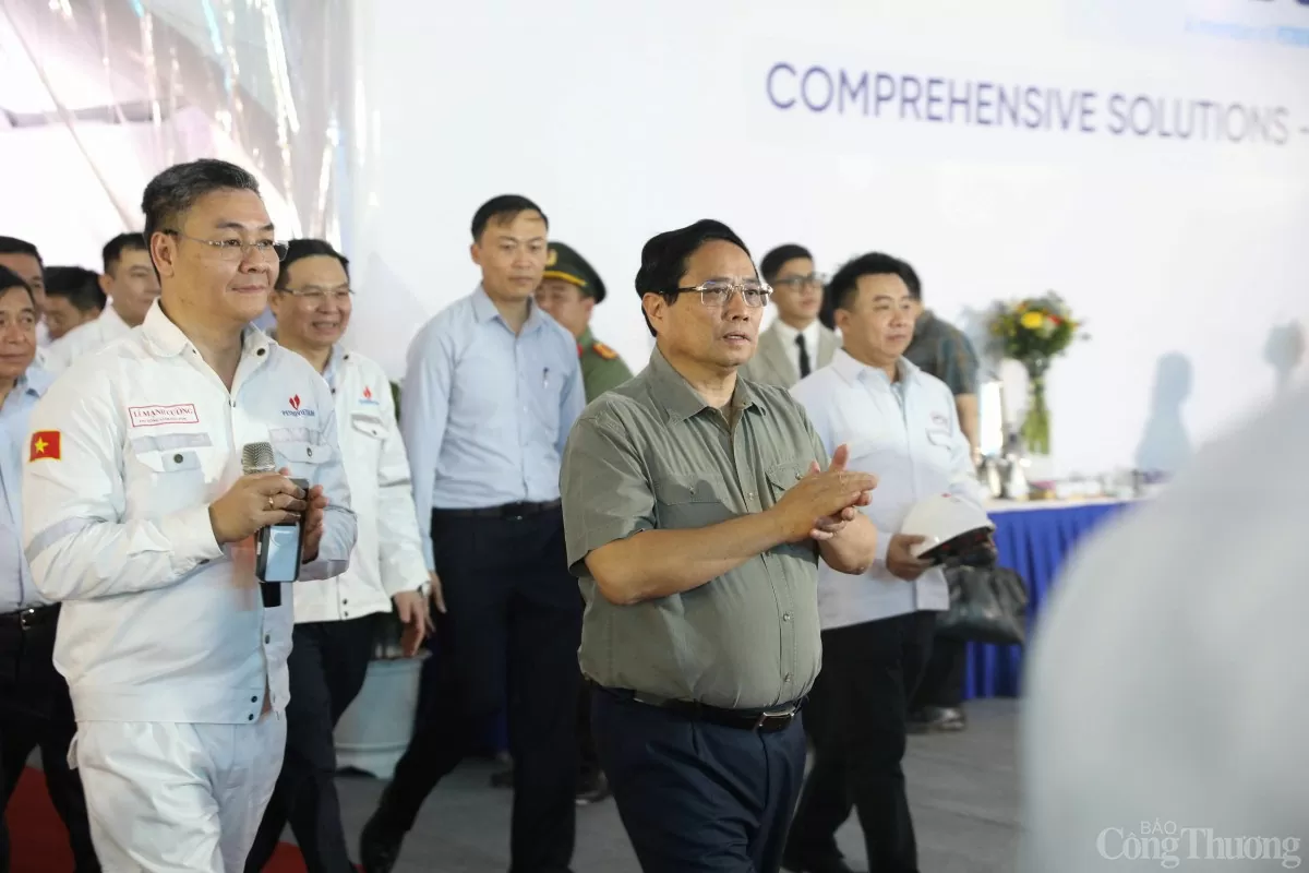 | Thủ tướng Phạm Minh Chính và các đại biểu nhấn nút khởi công các trạm biến áp - dự án Baltica 02; giàn CPP - dự án Lô B. Ảnh: Sỹ Đồng |