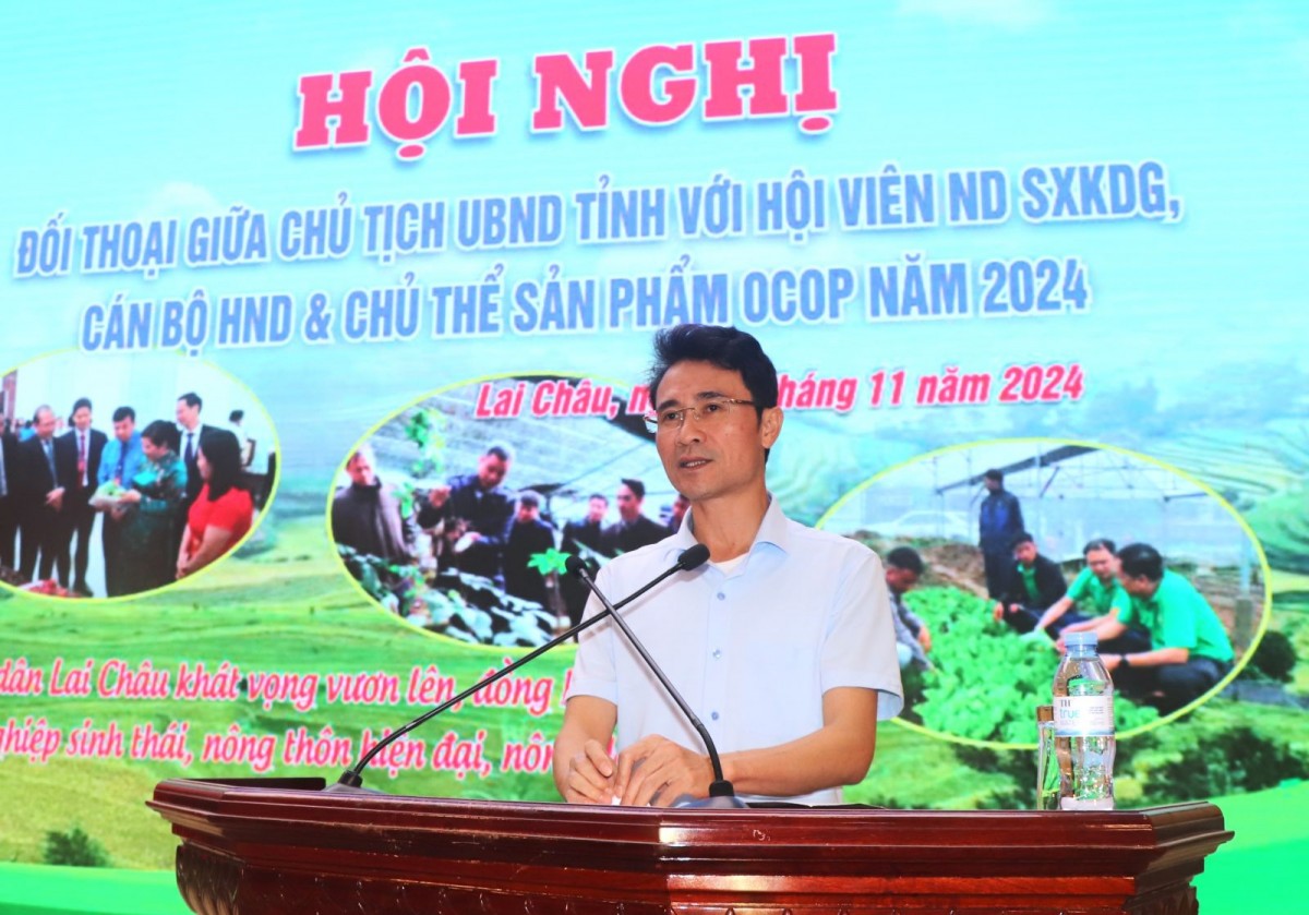 Phát biểu khai mạc Hội nghị, Phó Chủ tịch UBND tỉnh Lai Châu Hà Trọng Hải khẳng định: Trong thời gian qua, tỉnh Lai Châu ban hành nhiều chính sách để hỗ trợ và thu hút đầu tư vào phát triển kinh tế nông lâm nghiệp, xây dựng nông thôn mới, liên kết sản xuất, chế biến tiêu thụ sản phẩm, chính sách liên kết tập trung đất đai, phát triển hạ tầng sản xuất... Qua đó đã duy trì được tốc độ tăng trưởng ngành nông nghiệp bình quân tăng 5%/năm, nhiều sản phẩm thành hàng chủ lực của tỉnh, quy mô tập trung đã dần hình thành như: Trên 3.800 ha lúa, trên 10.500 ha chè, trên 7.400 ha mắc ca, trên 12.500 ha quế; trên 7.800 ha cây ăn quả; trên 11.300 ha cây dược liệu, trong đó có sâm Lai Châu; ngành chăn nuôi thủy sản cũng ngày càng phát triển; toàn tỉnh có 215 sản phẩm của 89 chủ thể được công nhận sản phẩm OCOP đạt từ 3 sao trở lên... Góp phần xây dựng nông thôn mới ngày càng khang trang, dân chủ, giàu bản sắc văn hóa, đời sống vật chất và tinh thần của Nhân dân từng bước được nâng lên.