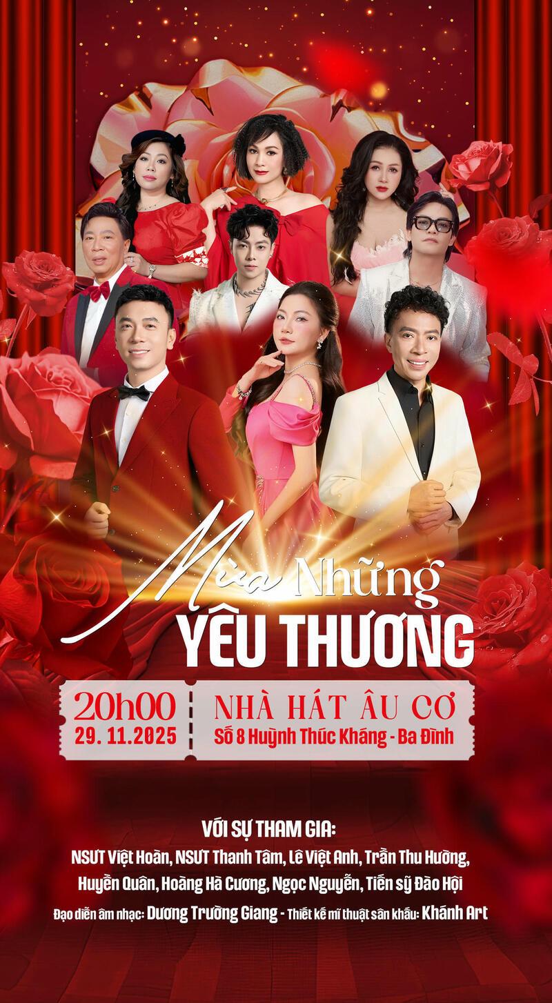 Chương trình âm nhạc đặc biệt 'Mùa những yêu thương' do NSƯT Việt Hoàn khởi xướng và dàn dựng diễn ra vào tối ngày 29/11/2025 tại Nhà hát Âu Cơ (Hà Nội).