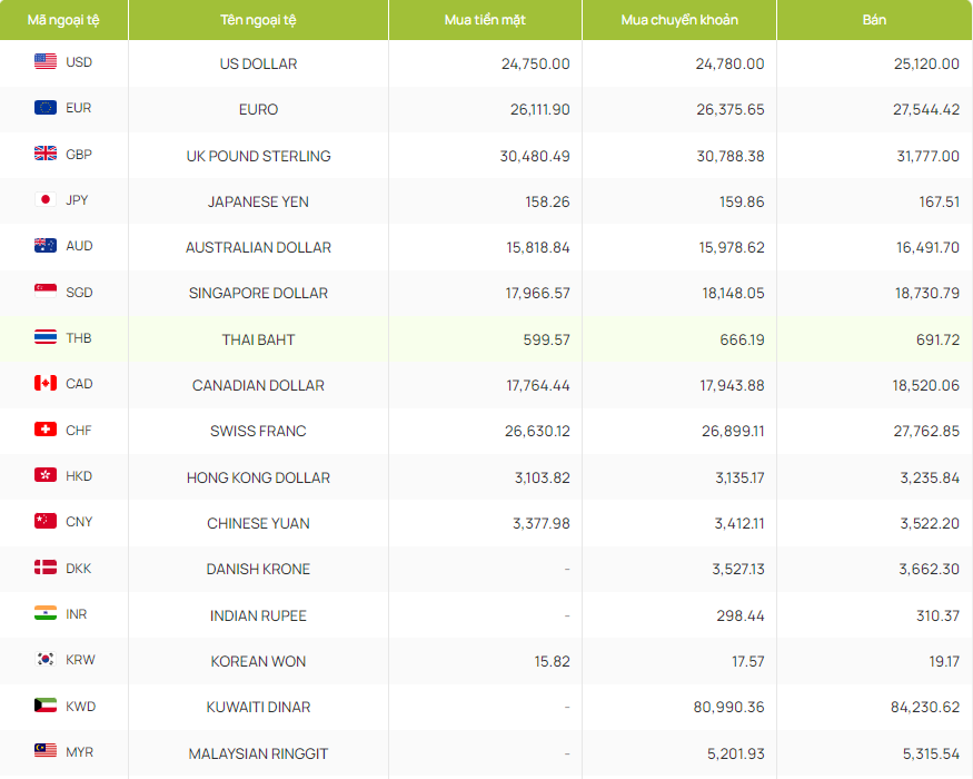 Hôm nay 11/4/2024, Ngân hàng Tiên Phong mua Won Hàn Quốc (KRW) giá cao nhất là 17.36 VNĐ/KRW. Bán Won Hàn Quốc (KRW) thấp nhất là Ngân hàng Quốc Dân với 20.36 VNĐ một KRW