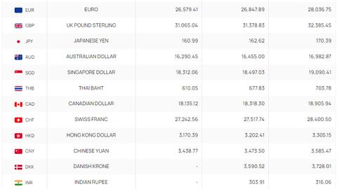 Tại Ngân hàng HSBC, tỷ giá Yen Nhật giảm 0,67 đồng ở chiều mua và giảm 0,69 đồng ở chiều bán, lần lượt ở mức 158,36 VND/JPY và 165,11 VND/JPY.