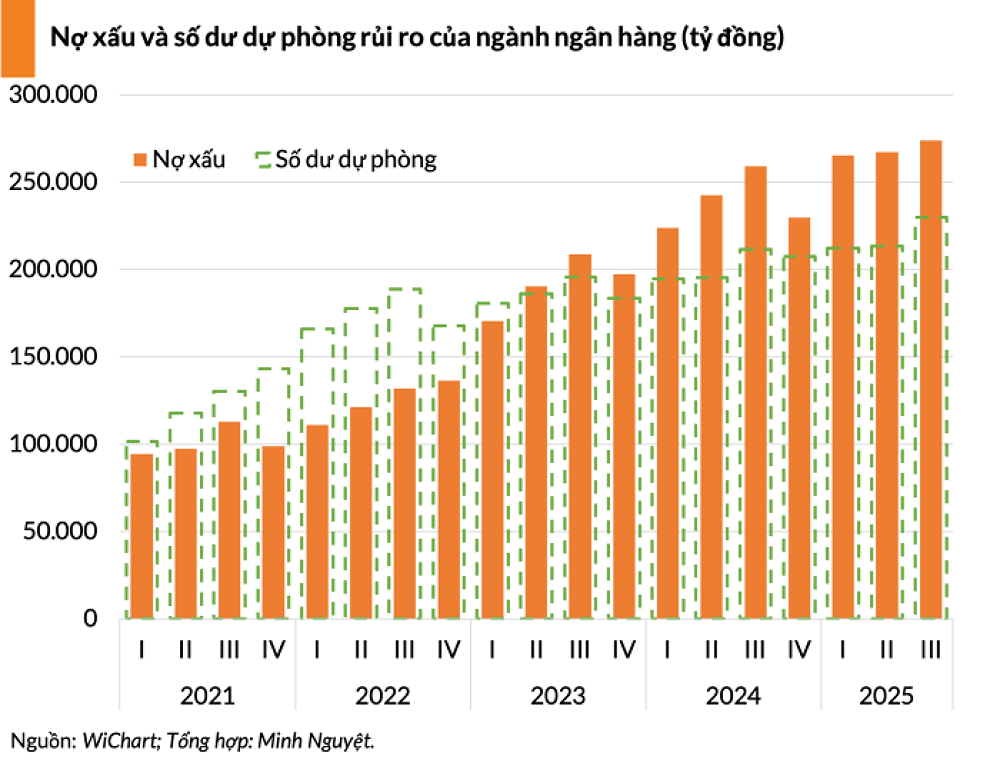Quay lại thời điểm cuối quý III/2025, tỷ lệ nợ xấu và tỷ lệ nợ nhóm 2 toàn ngành đạt lần lượt 2% và 1,37%, tăng 0,09% và giảm 0,24% so với cuối năm 2024. Tổng quan, chất lượng tài sản toàn ngành có sự cải thiện nhẹ so với đầu năm 2025.