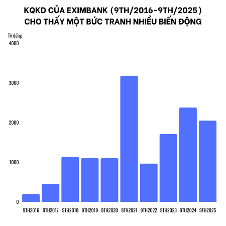 Trong khi đặt mục tiêu kinh doanh tham vọng, báo cáo tài chính quý III/2025 của Eximbank cho thấy sau 9 tháng, ngân hàng mới hoàn thành chưa đầy 40% kế hoạch lợi nhuận cả năm.