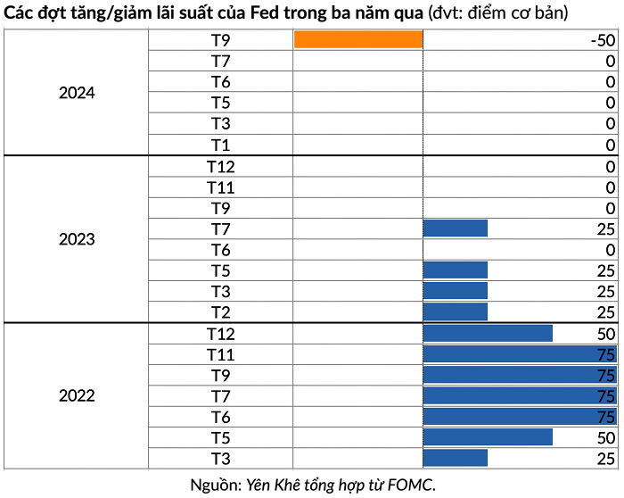 Trong một báo cáo công bố vào tháng 9, hãng xếp hạng tín dụng Fitch Ratings dự đoán Fed sẽ hạ lãi suất thêm 4 lần nữa trong giai đoạn từ nay cho đến hết năm 2025, trong đó có một đợt vào cuối năm 2024.