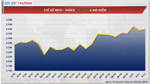 Thị trường hàng hóa nguyên liệu thế giới đảo chiều trong phiên giữa tuần (6/11), khi sắc đỏ phủ rộng 3 trên 4 nhóm hàng. Áp lực chốt lời cùng triển vọng nguồn cung cải thiện khiến chỉ số MXV-Index quay đầu giảm hơn 0,6%, xuống còn 2.325 điểm. Đáng chú ý, giá ca cao tiếp tục lao dốc mạnh, còn bạch kim cũng rơi xuống mức thấp nhất trong hai tuần.
