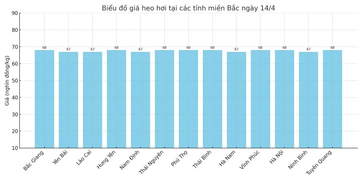Biểu đồ giá heo hơi tại các tỉnh miền Bắc ngày 14/4. |