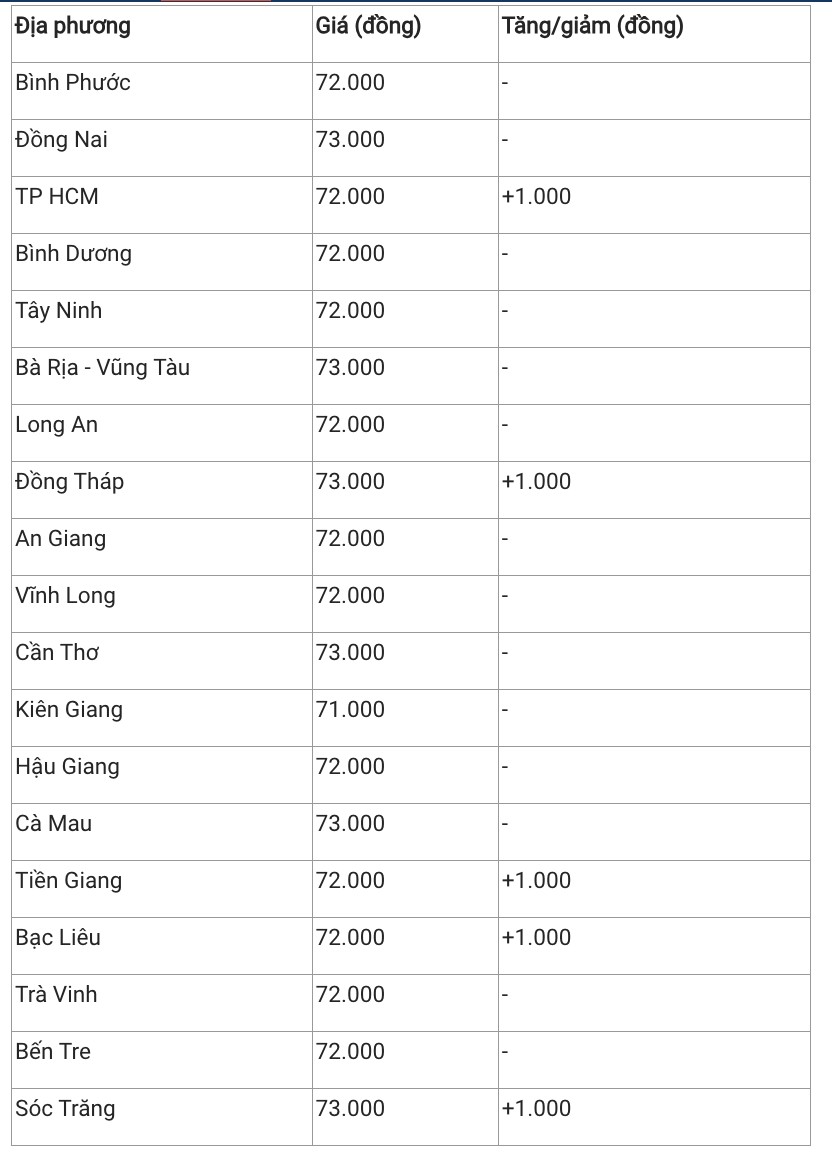 Hiện giá heo hơi khu vực này vẫn duy trì dao động 70.000 – 73.000 đồng/kg. Với tăng giá trong phiên sáng nay, đưa giá heo hơi 2 tỉnh Đồng Tháp, Sóc Trăng cùng đạt 73.000 đồng/kg, ngang với các tỉnh Đồng Nai, Bà Rịa – Vũng Tàu, Cần Thơ, Cà Mau. Còn các tỉnh thành trong khu vực dao dịch phổ biến trong khoảng 70.000 – 72.000 đồng/kg.