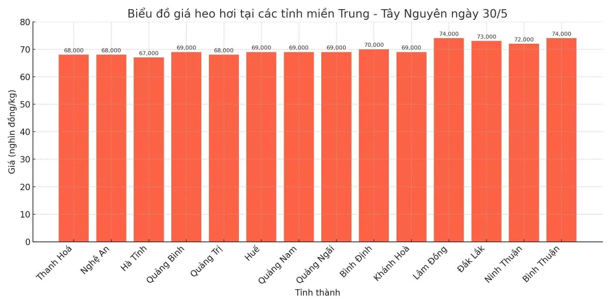 Biểu đồ giá heo hơi tại các tỉnh miền Trung - Tây Nguyên ngày 30/5. |