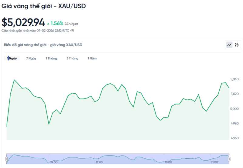 Giá vàng thế giới hôm nay 10/02/2026 và biểu đồ biến động giá vàng thế giới 24h qua