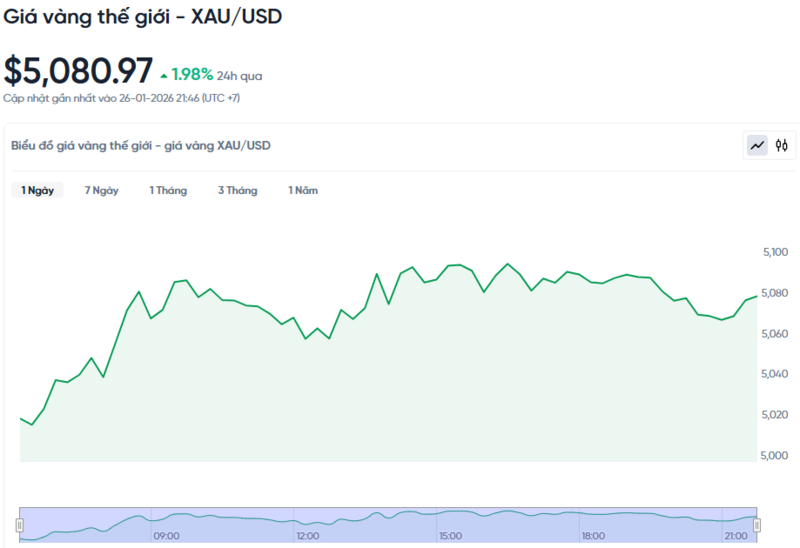Giá vàng thế giới hôm nay 27/01/2026 và biểu đồ biến động giá vàng thế giới 24h qua