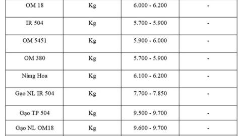Đơn vị tính: Triệu đồng/lượng | Đơn vị tính: Nghìn đồng/lượng | ||||||||