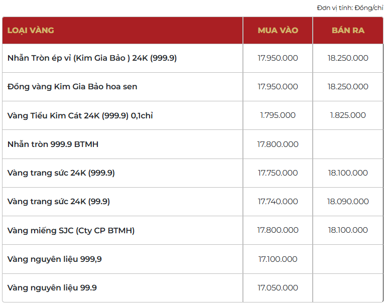 Công ty Vàng bạc đá quý Sài Gòn, Công ty TNHH Bảo Tín Minh Châu, Tập đoàn Doji, Phú Quý cùng niêm yết giá vàng miếng SJC ở mức 178 - 181 triệu đồng/lượng mua vào - bán ra. Mức giá này giữ nguyên so với trước Tết.