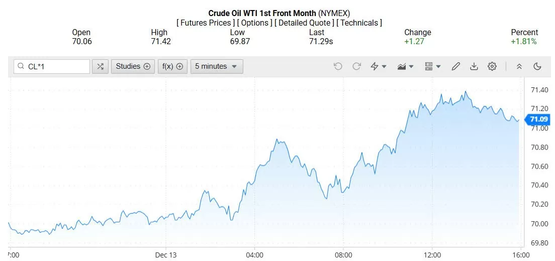 Giá dầu WTI trên thị trường thế giới rạng sáng 16/12/2024 (theo giờ Việt Nam) |