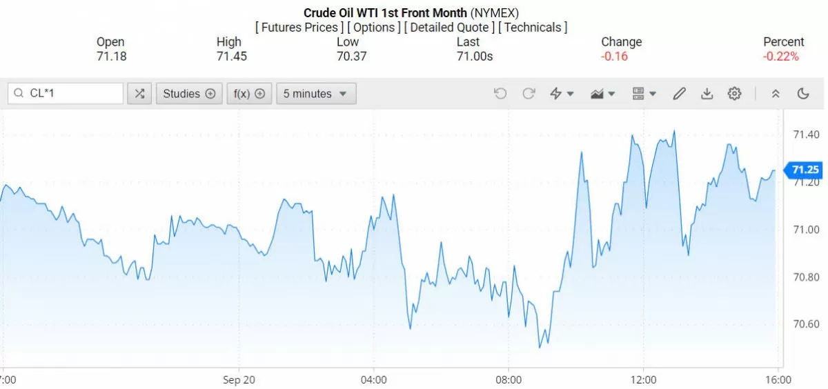 Ghi nhận trên Oilprice lúc 5h ngày 23/9/2024 (theo giờ Việt Nam), giá dầu WTI ở mốc 71,25 USD/thùng, giảm 0,22% (tương đương giảm 0,16 USD/thùng).