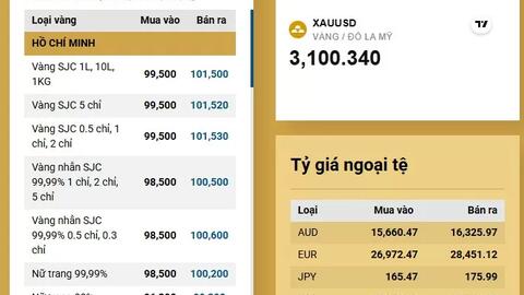 Nếu so với ngày 3/3/2025, thời điểm 9h sáng, Công ty TNHH MTV Vàng Bạc Đá quý Sài Gòn SJC niêm yết giá vàng SJC ở mức 89 - 91 triệu đồng/lượng mua vào - bán ra, thì đến hôm nay, sau gần 1 tháng, giá vàng SJC tại đơn vị này đã tăng thêm 11 triệu đồng/lượng mua vào và tăng 11,3 triệu đồng/lượng chiều bán ra.