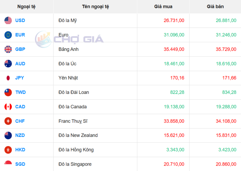 Ngân hàng HSBC đang bán chuyển khoản Đô la Mỹ với giá thấp nhất là: 1 USD = 26.093 VND