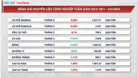 Báo cáo của Bộ Nông nghiệp và Phát triển Nông thôn dự báo giá hàng hóa sẽ có nhiều thay đổi trong năm nay. Trong tháng 1, giá hầu hết các mặt hàng có xu hướng tăng so với thời điểm tháng 11/2023. Trong đó, cà phê tăng 4-9%, gạo thường trên 6%, xoài cát chu 8%, tôm nguyên liệu (4%), cá nguyên liệu (5-6,7%)...